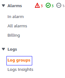- In the left navigation panel click on Log groups and select the log group you want to examine