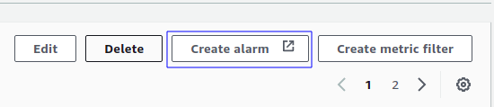After clicking on create metric filter You will see a metric filters page, Select the metric filter you have created and click on create alarm on the right side of the Metric filters section.