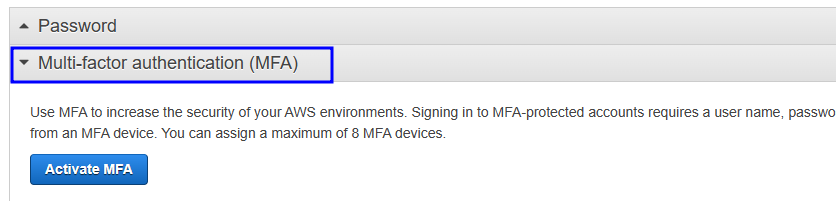 - Expand the Multi-factor authentication (MFA) section and Click on Activate MFA.