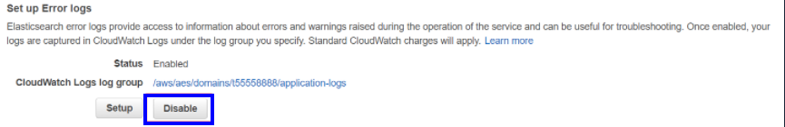If the status is disabled, it is confirmed that logging has not been enabled in the Elasticsearch Service