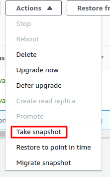 Perform Snapshot of the Database as a backup