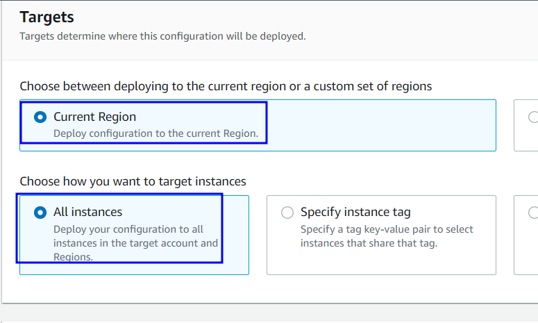 1. Choose Current Region for Choose between deploying to the current region or a custom set of regions.