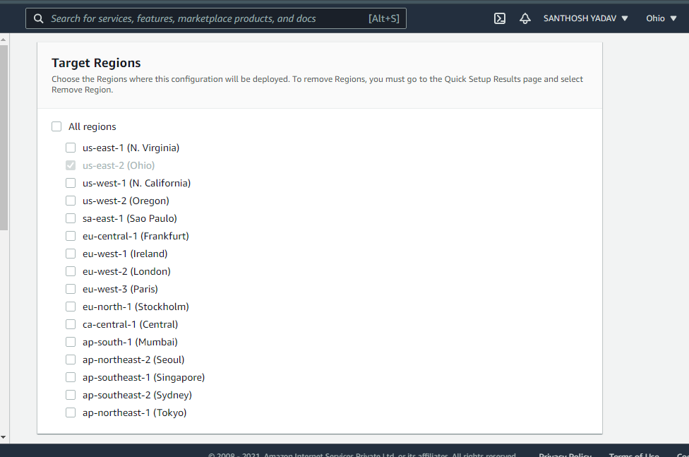 We can also change the AWS region from the navigation bar and repeat the process for other cloud regions as well.
