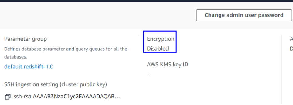 By default encryption in the redshift cluster is disabled and in the parameter group it contains default.redshift-1.0 which is not editable .