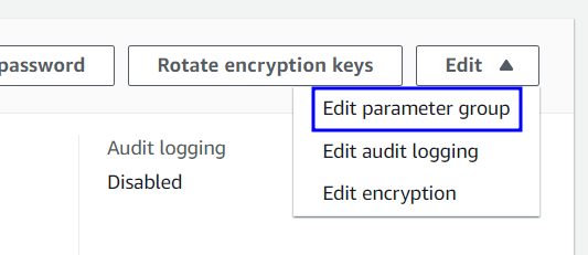 --parameters ParameterName=parameter_name,ParameterValue=parameter_valuemodify cluster change the parameter value to true in require_ssl
