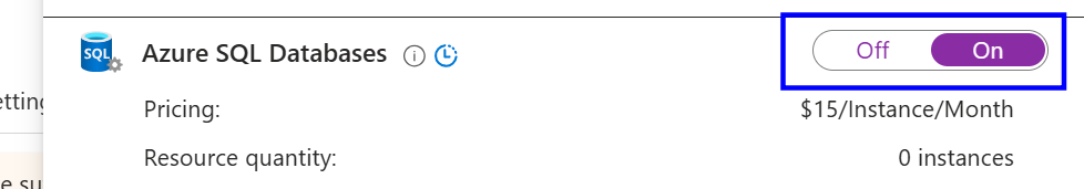 In Cloud Workload Protection (CWPP), in Databases, click Select types, and turn ON for the Azure SQL Database.
