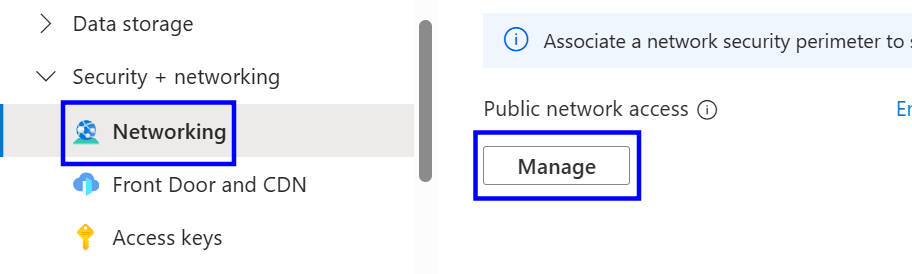 In the left-hand menu, under Security + networking, select Networking.