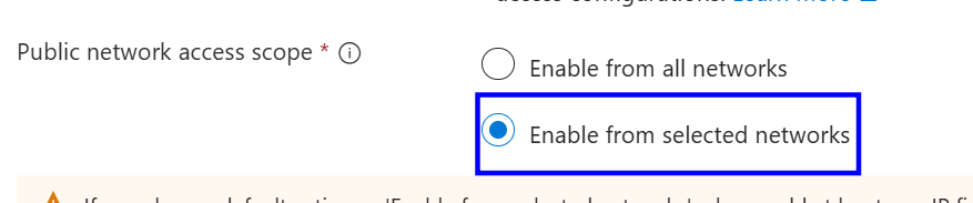 Click Public network access and set the scope to Enable from Selected networks.