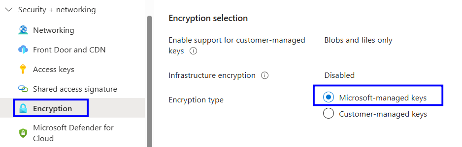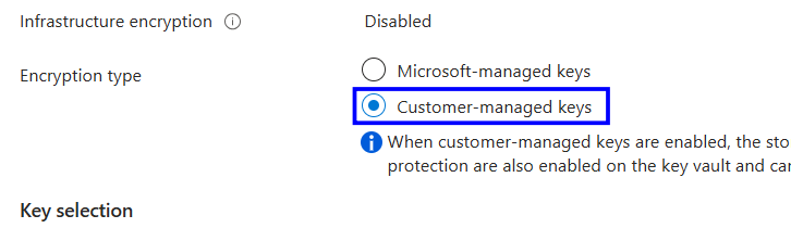 In the Encryption Selection section, change Encryption type to Microsoft-managed keys.