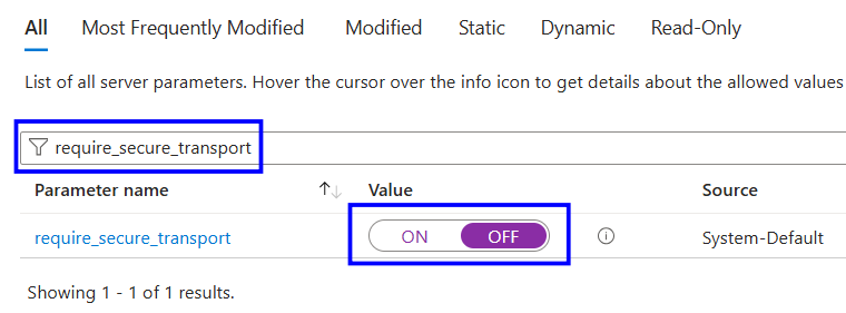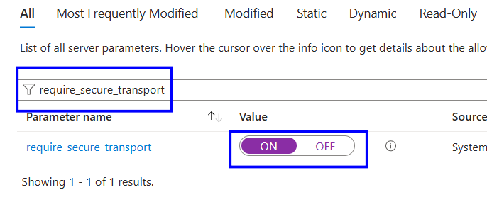 Search for the parameter require_secure_transport