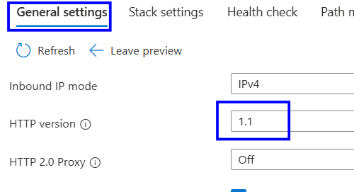Knowledge of which HTTP versions are supported in Azure App Service (e.g., HTTP/1.1, HTTP/2)