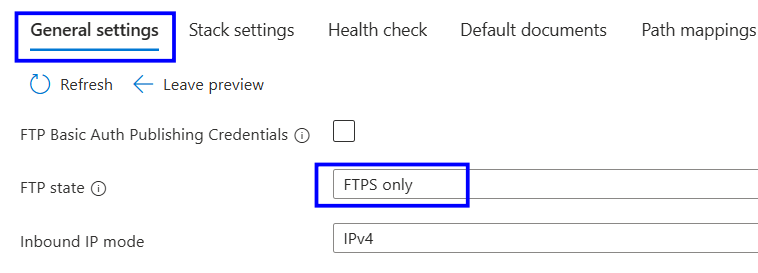 Disabling FTP improves application security but may impact workflows that rely on legacy FTP-based deployment. Teams must transition to secure methods. Any automated pipelines or tools using FTP will require updates to use FTPS or preferred deployment APIs.