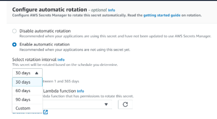 2. But when storing a new secret on secret manager, the rotation setting is chosen to be disabled by default.