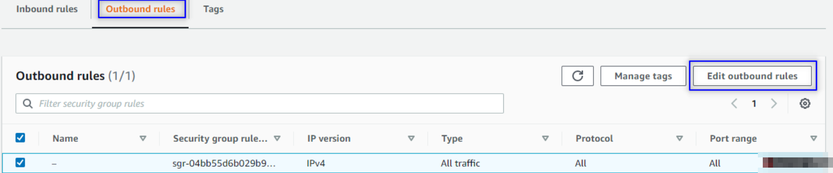 To list all the available outbound rules, run the following command (change the ID with your own security group ID):