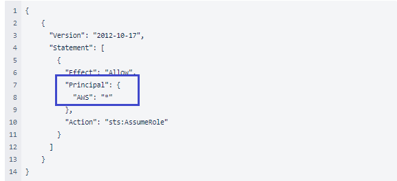 On the Edit Trust Relationship page, identify the Action and Principal elements and their current values. If the Action element value is set to "sts:AssumeRole" and the Principal element value is set to { "AWS": "*" }, anyone (any IAM entity) can assume the role, therefore the Trusted Entities policy attached to the selected IAM role is too permissive.
