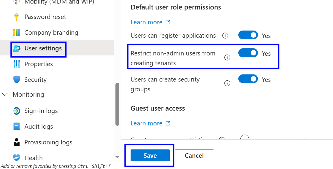 Microsoft Entra ID (formerly Azure Active Directory) allows users with specific permissions to create new tenants within the Azure ecosystem. When non-admin users are permitted to create tenants, it introduces the risk of unmonitored, unmanaged, and unauthorized tenant creation, resulting in security gaps, shadow IT, and governance challenges.