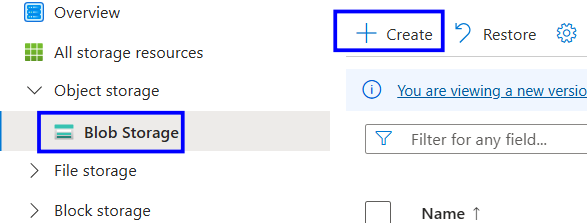 In the portal, search for Storage accounts and select Create to make a new storage account.