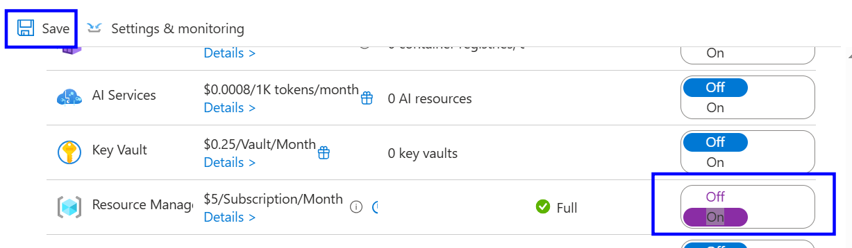 Under the settings, click Defender Plan