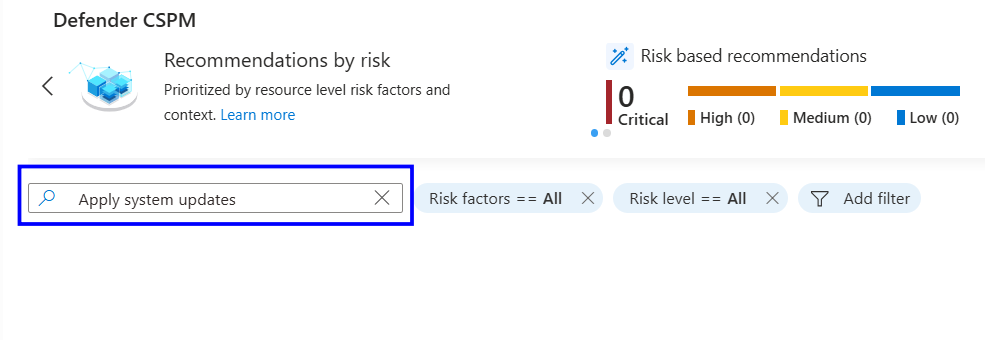 By default, Microsoft Defender shows “Apply system updates” only when updates are missing. If all updates are installed, the recommendation disappears.