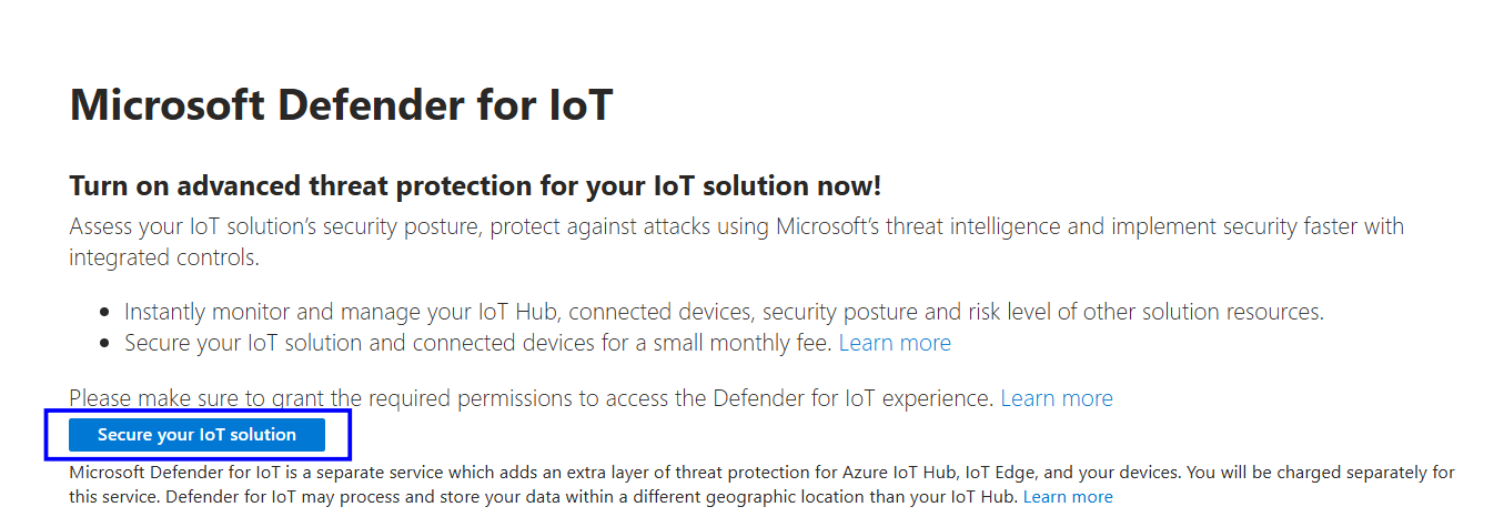Verify whether the Secure your IoT solution button is displayed