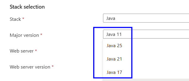 Periodically, new Java versions are released to address security vulnerabilities, improve performance, and introduce new features. Web Apps should use the latest supported Java version to ensure they receive security updates, bug fixes, and the latest functionality.