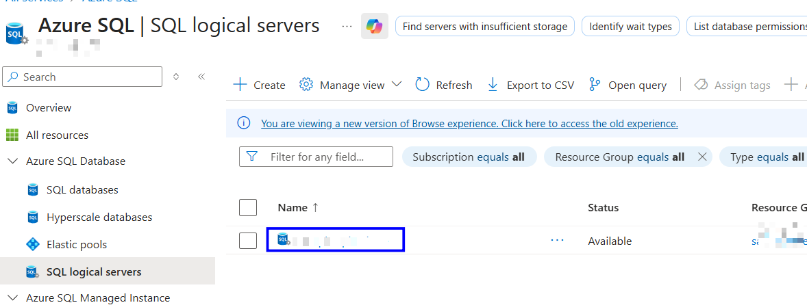 By default, SQL servers show: Admin name: No Microsoft Entra admin