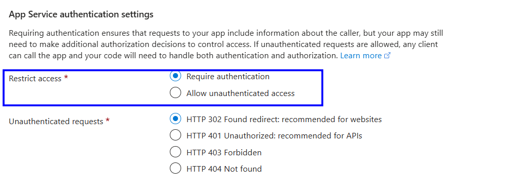 App Service Authentication (also called “App Service Authentication/Authorization”) ensures that only authenticated and authorized users or applications can access the Web App. Enabling authentication helps protect the app from unauthorized access and enforces identity-based security.