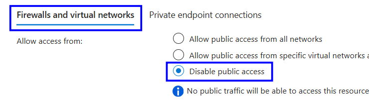 In Firewalls and virtual networks, set Public network access to Disabled.