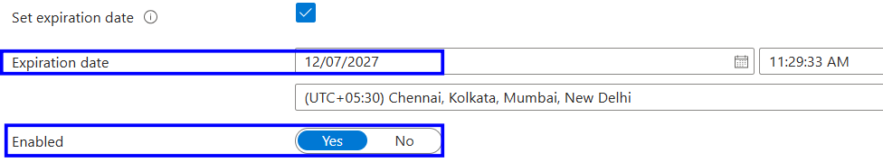 Ensure Enabled is set to Yes and configure an appropriate Expiration date.