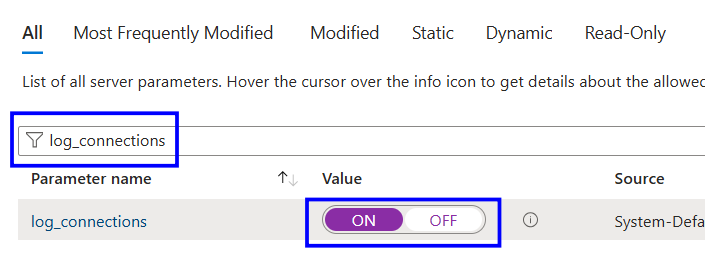 For Azure Database for PostgreSQL (Single and Flexible Servers), the default value for log_connections is ON.
