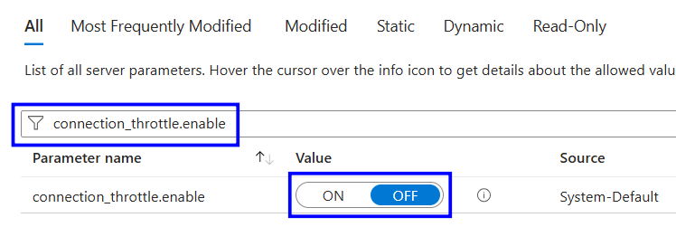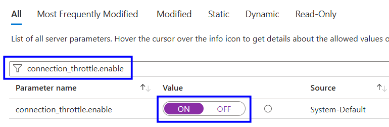 The PostgreSQL parameter connection_throttling enables throttling of excessive connection attempts and logs repeated failed connections coming from the same source. When enabled, PostgreSQL can detect “connection storms” or brute-force authentication patterns and throttle them to protect server stability. In Azure PostgreSQL (Single and Flexible Servers), this parameter is important for preventing misuse, monitoring abnormal behavior, and maintaining availability under load or malicious activity.