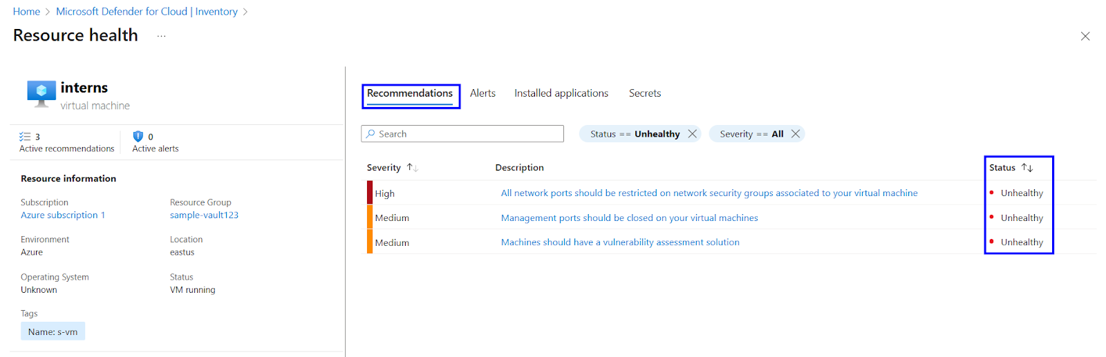 Return to Microsoft Defender for Cloud and verify the virtual machine status changes to Healthy.