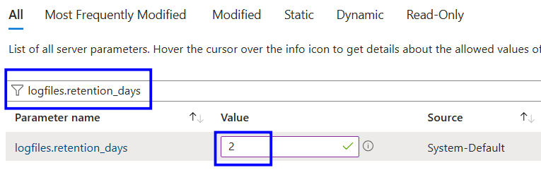 Search for the parameter logfiles.retention_days