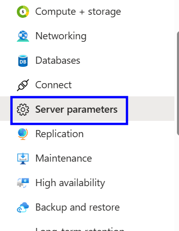 On the left-hand menu, under the Settings section, select server parameters.