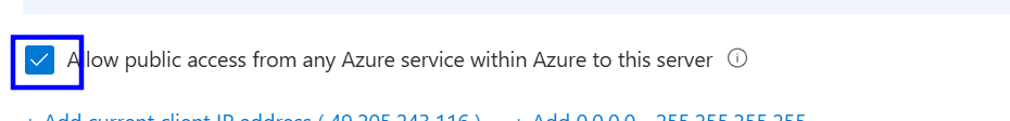 If the ‘Allow public access from any Azure service within Azure to this server' is checked, follow the implementation steps.