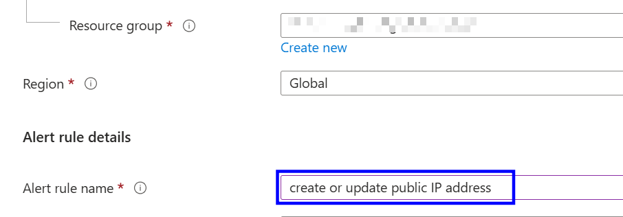 Provide an alert rule name and select a resource group