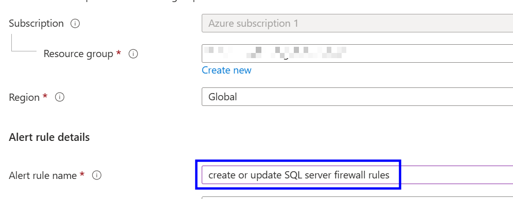 Locate the Create or Update SQL Server Firewall Rule alert