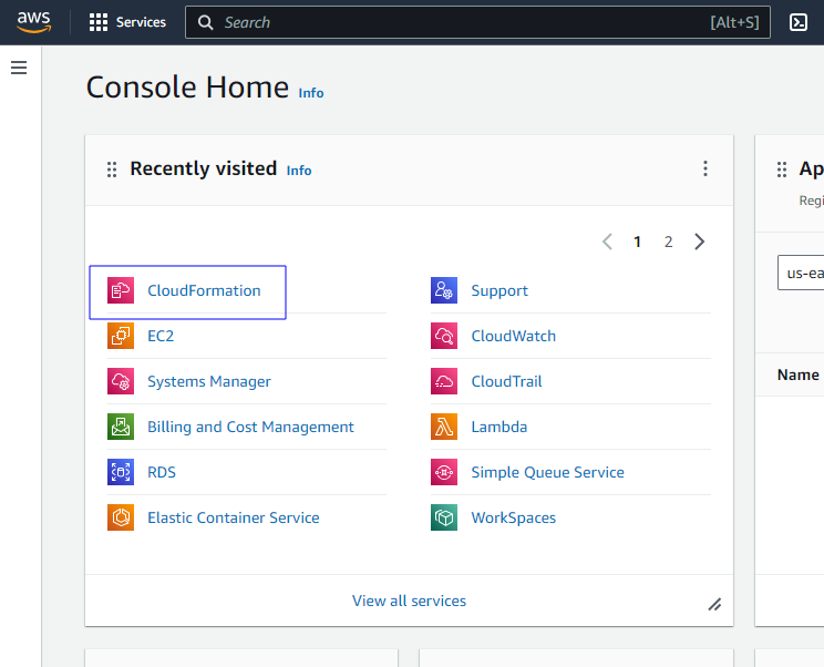 Go to the cloudFormation service