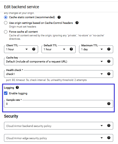 Logging for HTTP(S) load balancers is disabled by default. When enabled, the default sample rate is set to 1.0 (100%). Adjust the sample rate to balance cost and logging requirements.