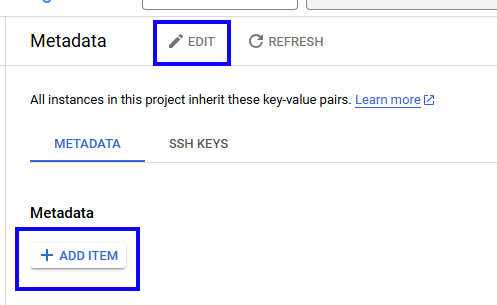 Navigate to the VM Compute Metadata page: https://console.cloud.google.com/compute/metadata.