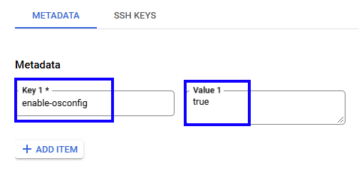 gcloud services enable osconfig.googleapis.comAdd Metadata Tag: