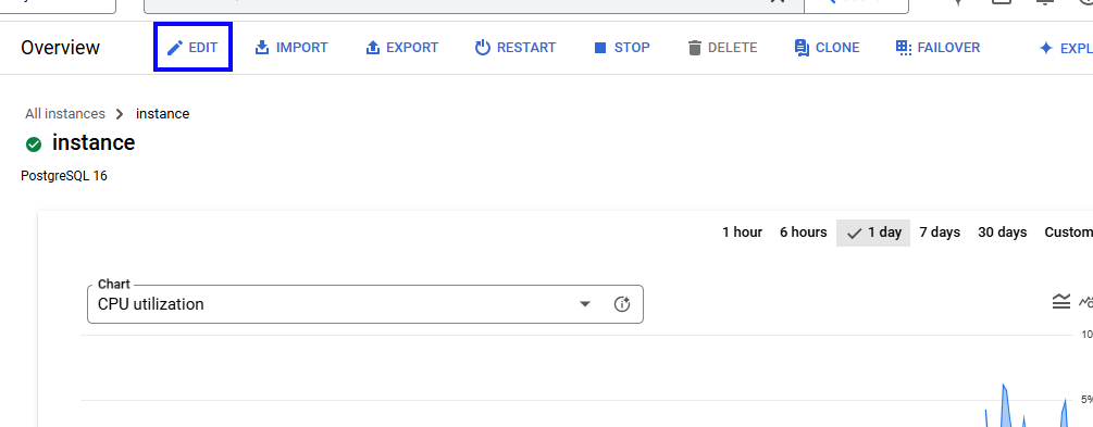 Select the desired PostgreSQL instance to open its Instance Overview page.