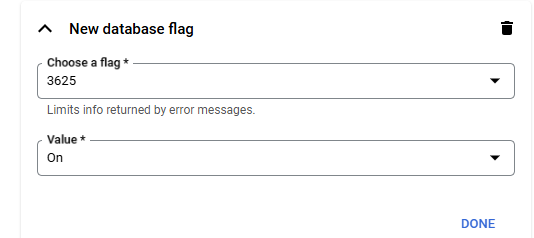 gcloud sql instances patch <INSTANCE_NAME> --database-flags "3625=on"If other flags are already set, include them in the command to avoid resetting them to default values.