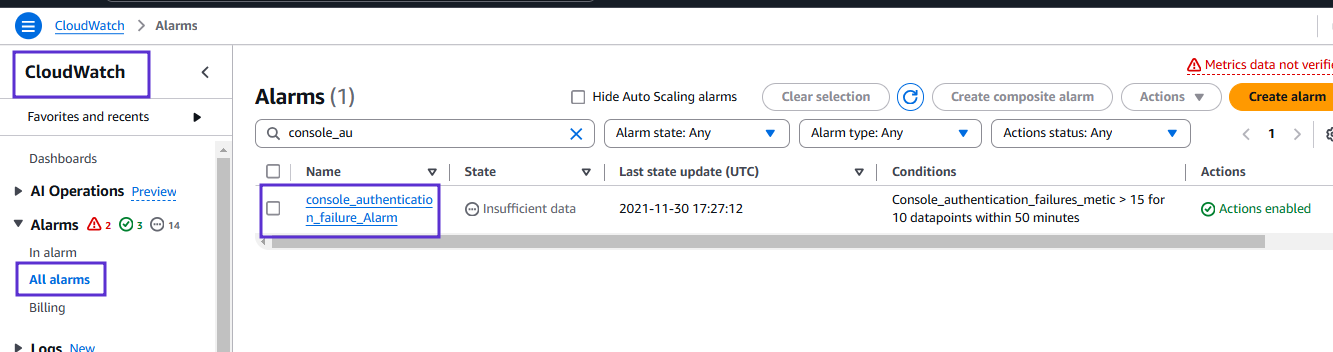 Step 4: Create a CloudWatch Alarm for Console Authentication Failures