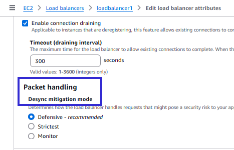 By default, Classic Load Balancer is set to monitor mode, which does not block desync attempts but logs them.