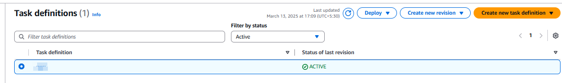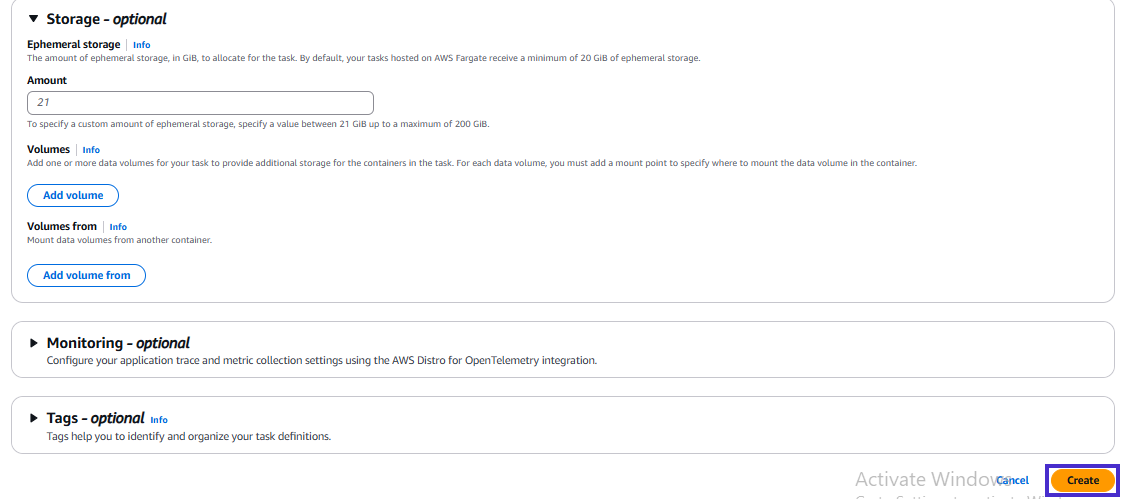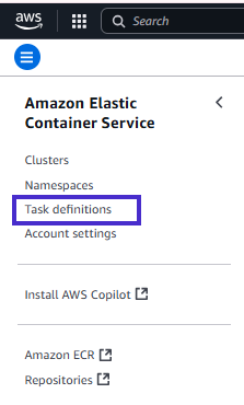 In the ECS Dashboard, go to Task Definitions and select the task definition you want to configure or create a new revision.