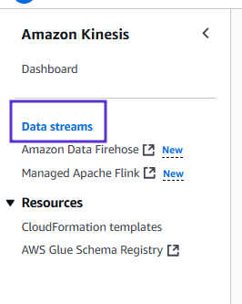 Log in to the AWS Management Console and navigate to Amazon Kinesis.