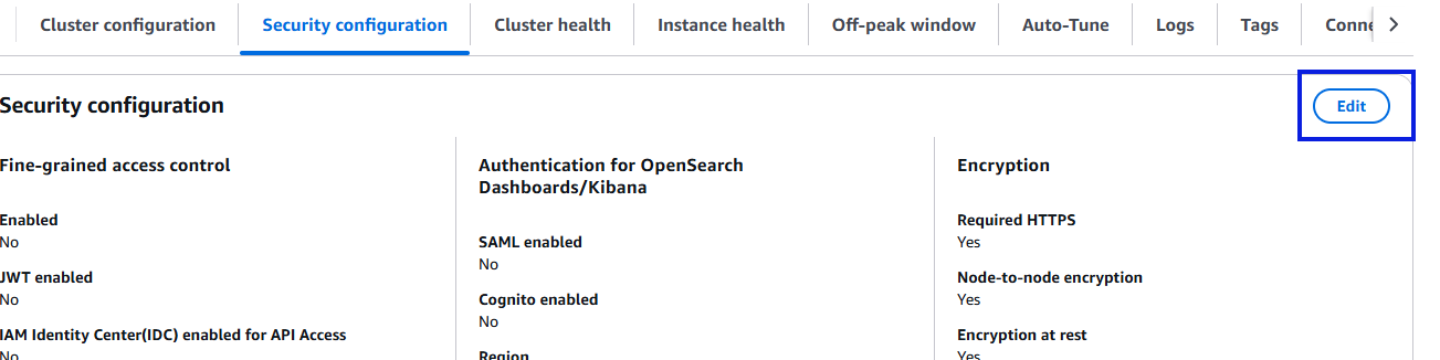 Amazon Elasticsearch Service (Amazon OpenSearch Service) provides managed clusters to run Elasticsearch and OpenSearch, offering powerful search and analytics capabilities. Encryption at-rest ensures that data stored in your Elasticsearch/OpenSearch domains is encrypted when it is not actively in use. AWS provides encryption at-rest by using AWS Key Management Service (KMS), which helps protect your data from unauthorized access. This SOP outlines the process to verify if encryption at-rest is enabled for your Elasticsearch/OpenSearch domains.